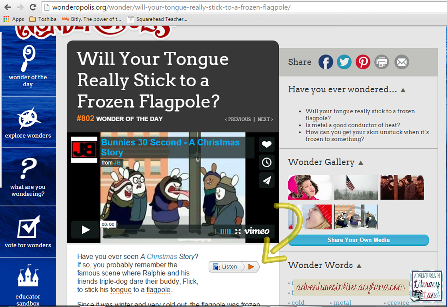 One of our standards in the third grade is for students to read what I call "Real Life Reading", which includes such things as brochures, flyers, schedules, recipes, and websites. The third grade teacher and I spent an entire week working on "Real Life Reading". I used Wonderopolis with my students as the website to read. They used the iPads to look up different "wonders" and read about them. Here are some things we loved about it!