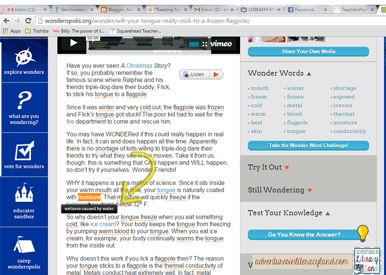 You can click on any word that has an orange dotted line and see what it means. Plus,there are "Wonder Words" for each "wonder" where students can learn and then do a matching activity.